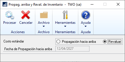 La rutina que se debe ejecutar esta en Manufactura | Rutinas | Propagar hacia arriba y Revaluar
